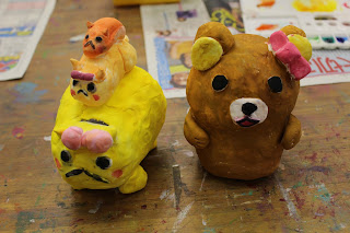 くま 完成です!となりは、カピバラ親子だそうです。みんな、可愛い貯金箱が出来上がりましたね。