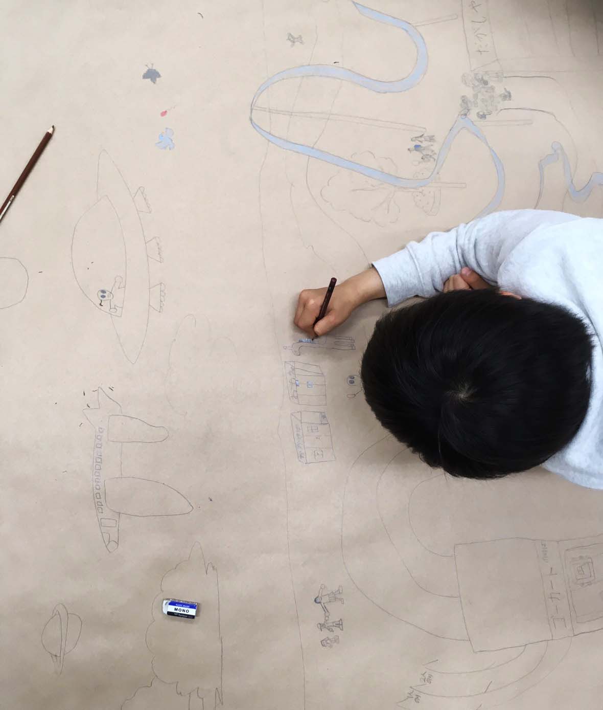 4月は絵画制作が中心となります。みんなで大きな紙に思いっきり描いてみよう!お絵かきしていたら、隣の友達と一緒に協力して描いたりして、楽しんでいました!さぁ!今年はこのメンバーで、沢山 絵を描いたり、工作をしたりして楽しみましょう!!